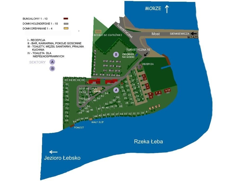 un pequeño muelle para botes y yates en el río Leba, una escuela de windsurf, una escuela de kitesurf, billar, dardos, paintball, tenis de mesa,